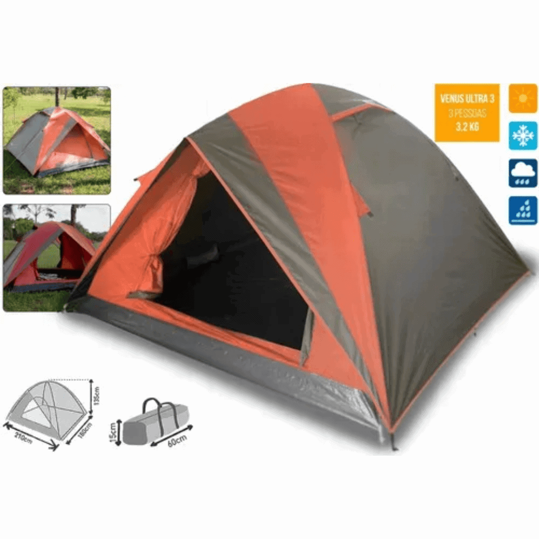 Barraca Venus Ultra 3 Pessoas Laranja com Verde